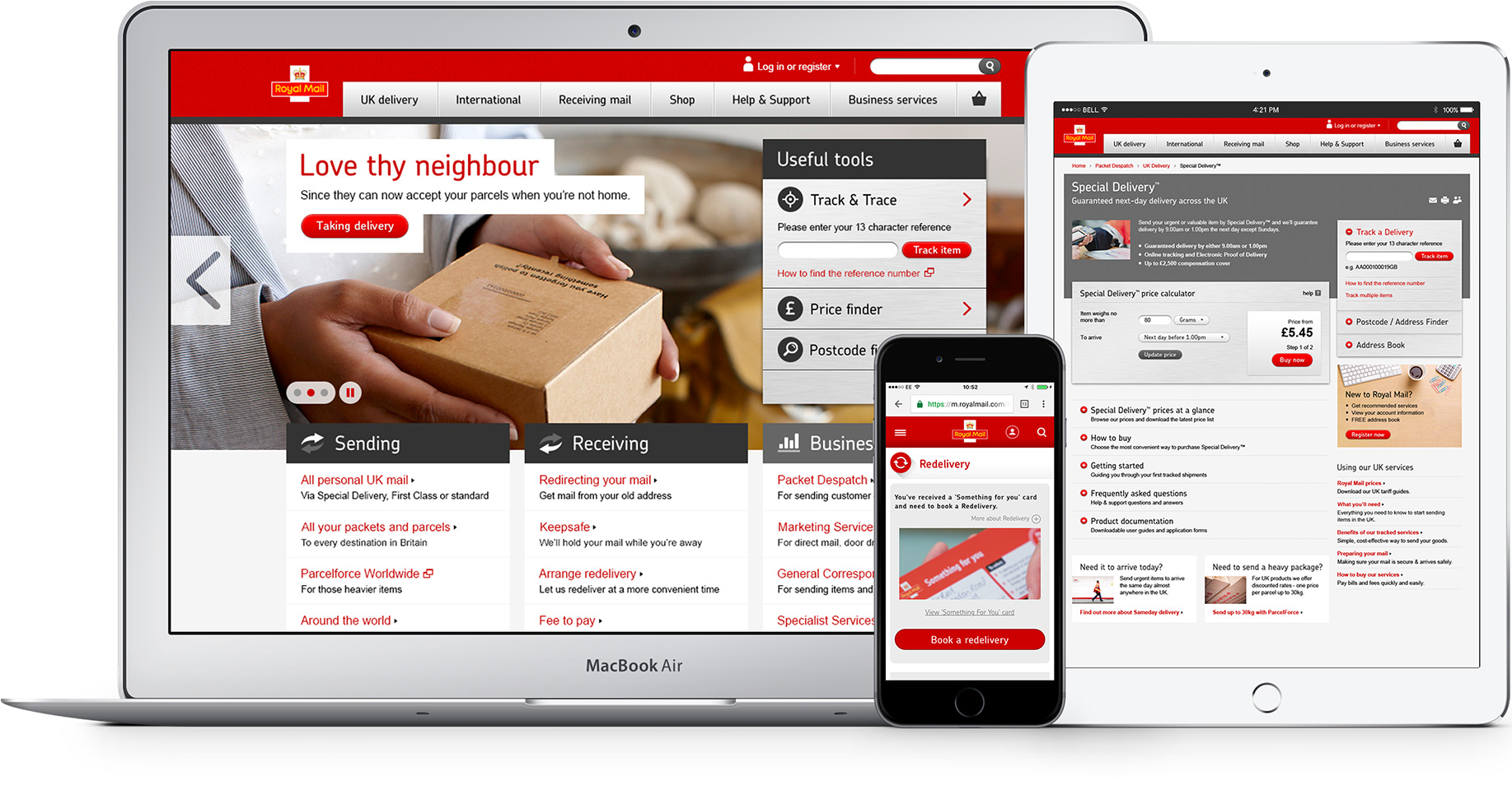 ROLES As a UK institution, Royal Mail needs its new website to reflect both its iconic heritage, and the modernisation agenda that’s transforming the company into a successful international logistics business. It also has to meet the needs of many different users – from individual customers to businesses of every shape and size. We put user centred-design at the heart of our approach, creating 14 distinct profiles, and mapping their journeys to create the best practice functionality the site now delivers. Graceful, intuitive design and light-touch copy combine to create a personalised experience for every visitor – supported by video product guides and helpful infographic walkthroughs. Professional and individual responses to the site have been overwhelmingly positive – with users delighted by the ease, speed, and convenience it offers. As Charlie Herbert, Head of Digital at Royal Mail puts it – “Proximity analysed the way our customers use and relate to our service in exceptional detail, and what the site would have to do to meet all their needs. They answered that vision by delivering a project of outstanding quality, value and style.” |